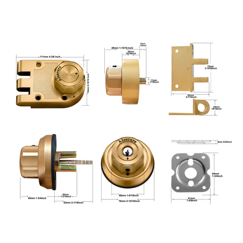 AIsecure A9 AIsecure Jimmy Proof Lock SC keyway(Schlage keyway), with Night Latch & Anti-Mislock Button ,brass + 4*cylinders with Keyed Alike Combo